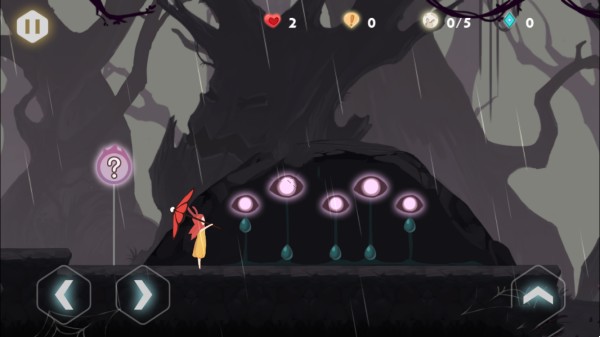 第三个点,拉动第一个和最后一个绳子(眼泪?),把所有眼睛点亮,触动后面的机关,使得悬台升起,然后一鼓作气跳过去即可。