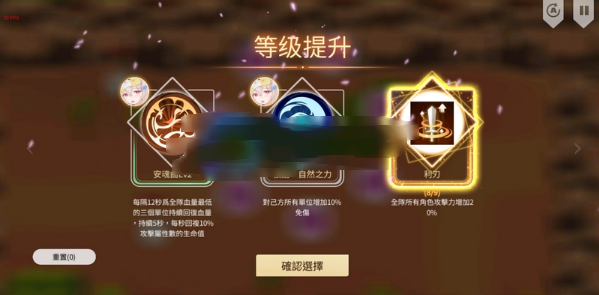 在技能图册方面,选择hp提升、攻击力提升、火属性提升、火攻提升,伤害减免和伤害易伤按boss输出机制考虑选择。 可以保证度过16章之前的所有关卡,部分关卡如双子boss需要一定手法。