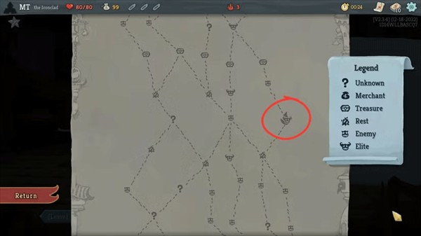 铁甲舰的钥匙一旦解锁,是最容易收集的。当你走到篝火旁时,你将有一个新的选择——"回忆"。在篝火旁冥想会获得红钥匙,但代价是不能休息或升级一张卡牌。