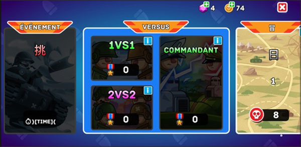 对于游戏玩法而言,山地坦克大战游戏为玩家们提供了三种游戏模式,分别是:闯关模式、PK模式、挑战模式,每种模式玩法都是不一样的,可以给到玩家们不一样的乐趣,例如:闯关玩法,这里提供了很多关卡可以挑战,每个关卡玩家都需要与不同类型的坦克对战,玩起来的体验是非常不错的!