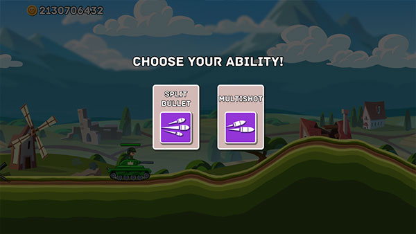 1、首先打开HillsofSteel最新版,进入开局选择技能,不同的技能攻击也不同;