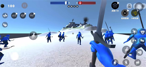4、最后玩法非常的简单左边的摇杆是用来控制角色的移动而右边的按钮是操作键,把敌人打倒获取到五十分后就代表闯关成功。