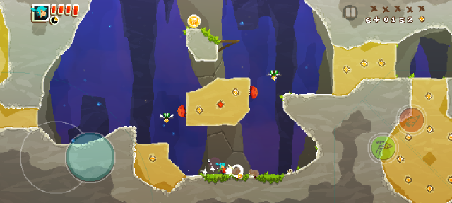 1、游戏中拖动左侧摇杆移动角色,右侧绿色按钮则是跳跃。