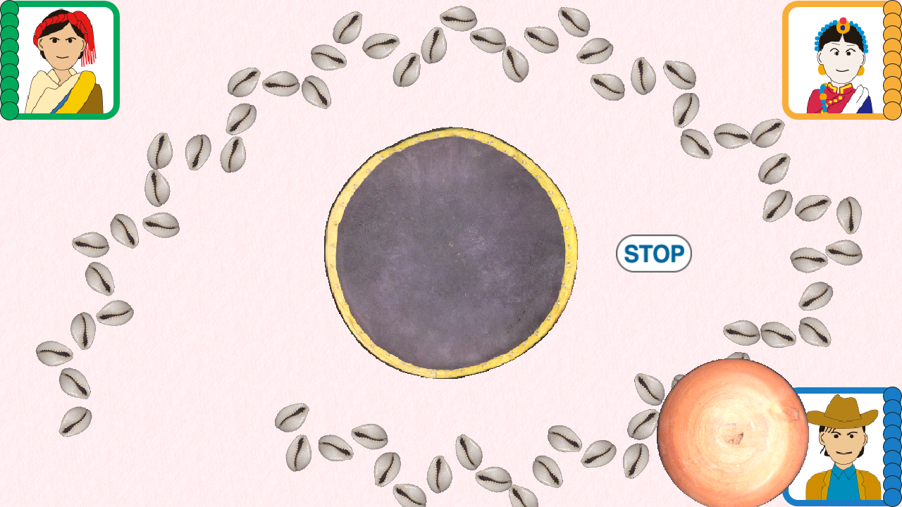 把2个骰子用木碗摇动后扣下,根据骰子的眼数移动硬币。