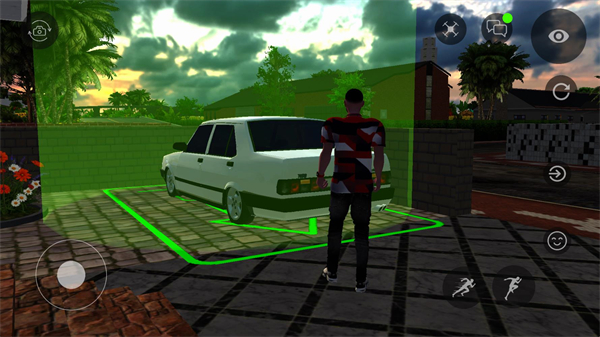 4、在地图里有一些绿光区域,将车辆停在这些区域可以让角色下车,这样可以操控角色自由移动。