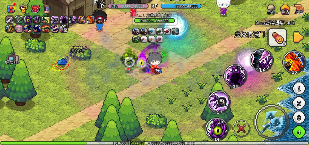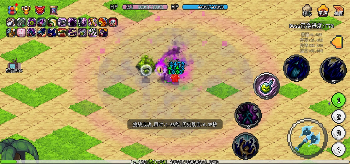 1级我是344命中,穿好装备,传送去沙滩,再看经验广告和命中广告,一路往右边打边走,到贝壳那里差不多20级了。然后往上走去打50级以上的怪,升到30级左右点好技能,加好点,制作一件30级法杖,去打66级BOSS和79级BOSS,俩BOSS都在58级蓝怪左边和上面,升到42级,用时10分钟。
