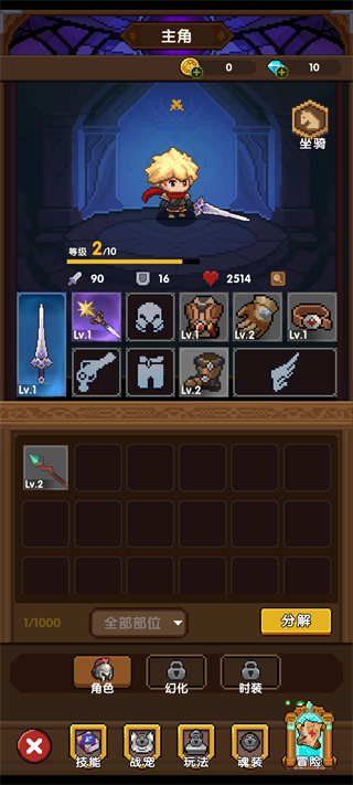 前期优先穿戴掉落的装备,尤其是武器和防具,直接提升攻击、防御与生命值。背包内的低等级或无用装备可通过 “分解” 功能回收资源,为后续强化做准备。