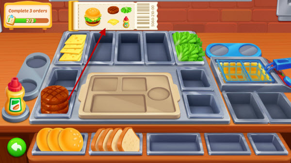 3、在屏幕上方会显示当前需要制作的菜品以及所需要的材料。