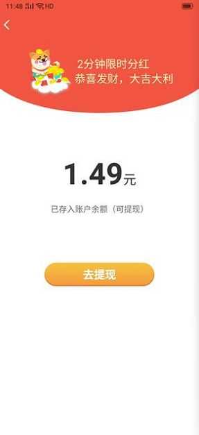 4、限时两分钟结束后可以获得1元左右奖励,在奖励中可以直接提现0.3元。