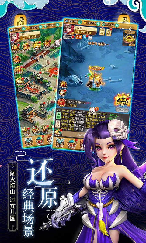 仗剑闯荡江湖,归来仍是少年。《大圣觉醒》以传统回合制为战斗核心,在封禁妖魔、捉拿厉鬼、挖宝打书等多种经典玩法的基础上,创造性的融入神宠洗练,跨服对决等特色玩法,带领你探寻最本真的西游乐趣。