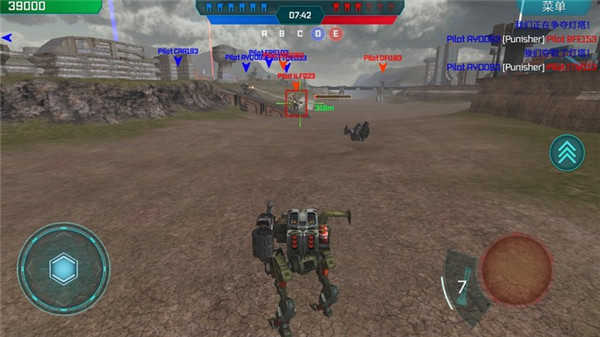 游戏中机甲的操作其实挺简单的,方向移动跟大多数的射击游戏一样,都是通过屏幕左下角的方向按钮来控制前进,后退和左右移动,右边是发射子弹按钮,分为左手武器和右手武器,只要按住发射按钮不放就会一直发射子弹,移动按住发射按钮的手指就可以移动准星位置,武器子弹打完后换弹夹的时间有九秒左右,所以一定要带两个手都装备武器,不然武器熄火了就只能挨打了。下面再给大家说下机甲和武器的种类划分。