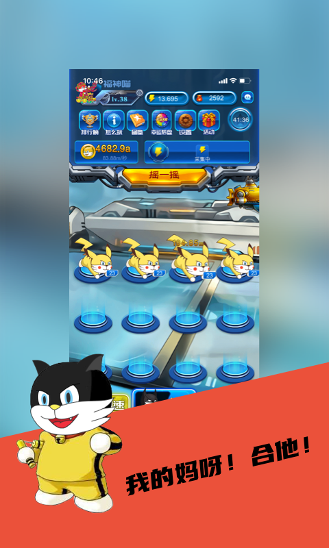 靠养喵升级赚取金币是这款游戏的核心,喵的级别越高,赚取的金币就越多,才能让你购买更高级别的喵,最终目标是合成38级的喵。