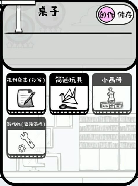 很多桌子有创作储存两个界面,包括很多饭桌、电视机也是可以切换界面的。两层贫穷的宝宝们很多找不到工具材料的都在电视机柜子里嗷。