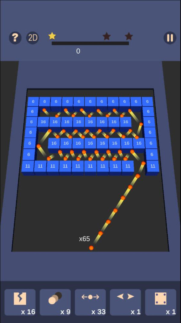你可以优先击破带有技能的砖块,这样你就能够获取特殊能力从而帮自己快速消除。
